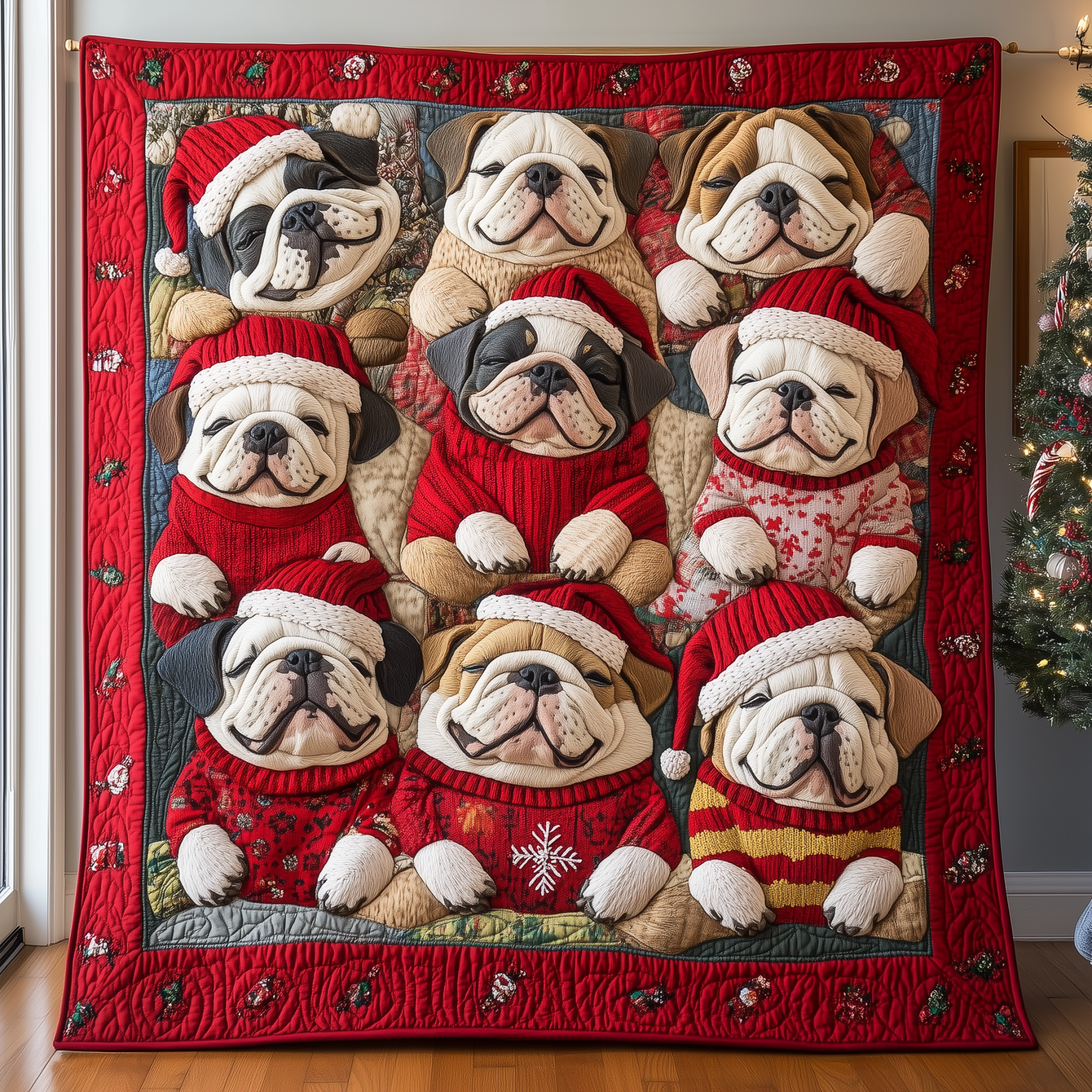 Festive Bulldog Quilted Blanket GFTONL849