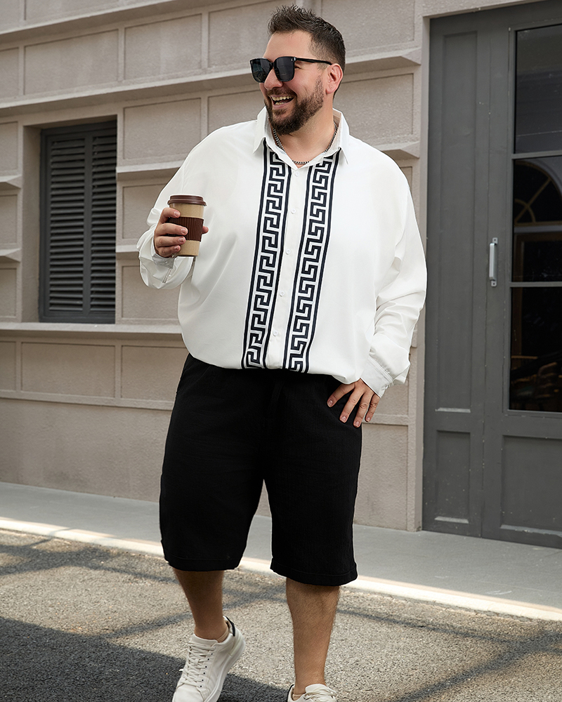 Men's Plus Size Simple Geometric Stripes Long Sleeve Shirt Trousers Suit
