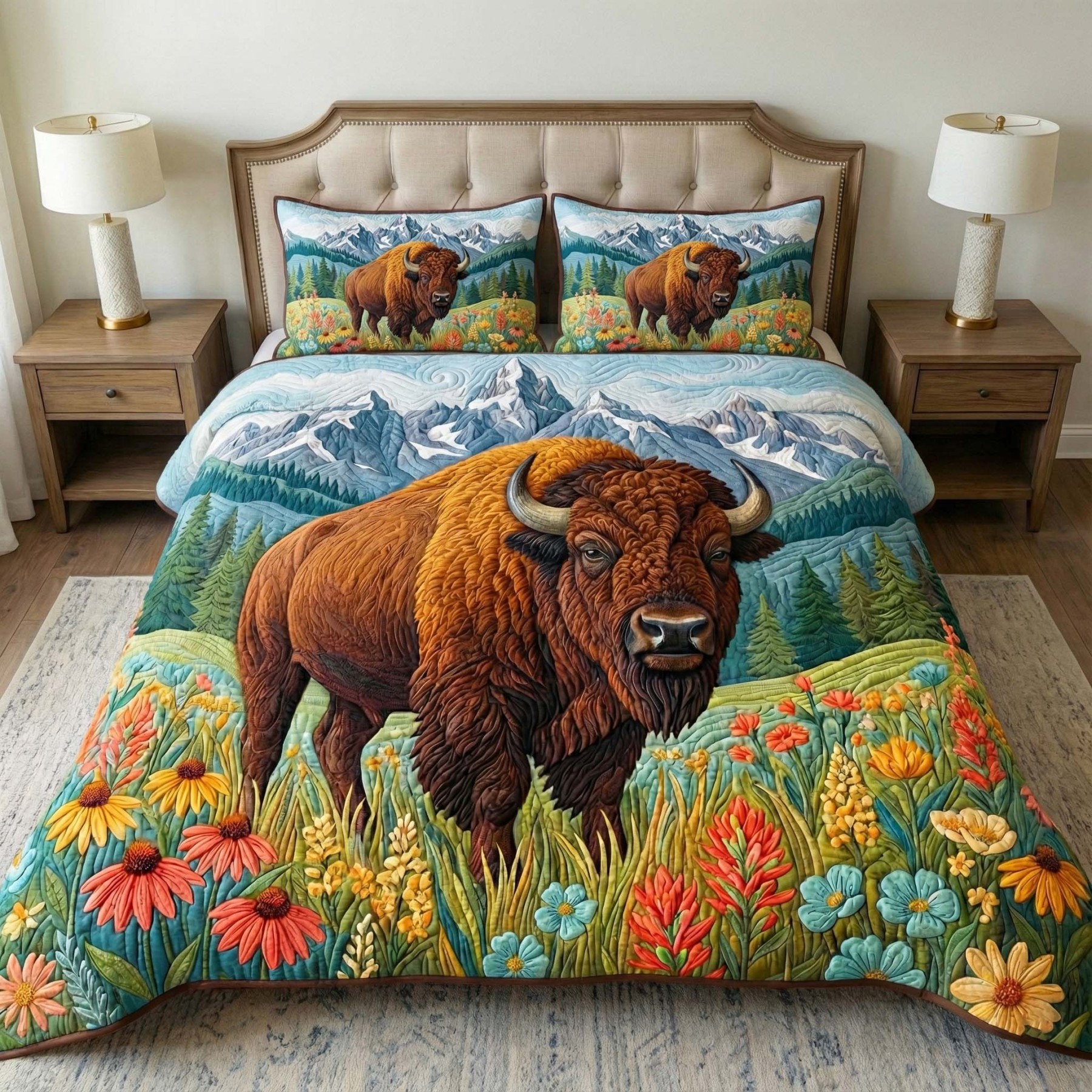 Wildflower Bison 3-Piece Quilted Bedding Set GFTOQM2007
