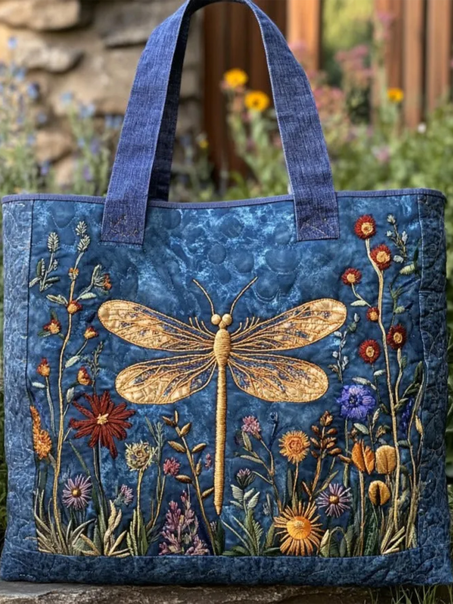 Christmas Plants Flowers Animals Dragonflies Quilted Tote Bag