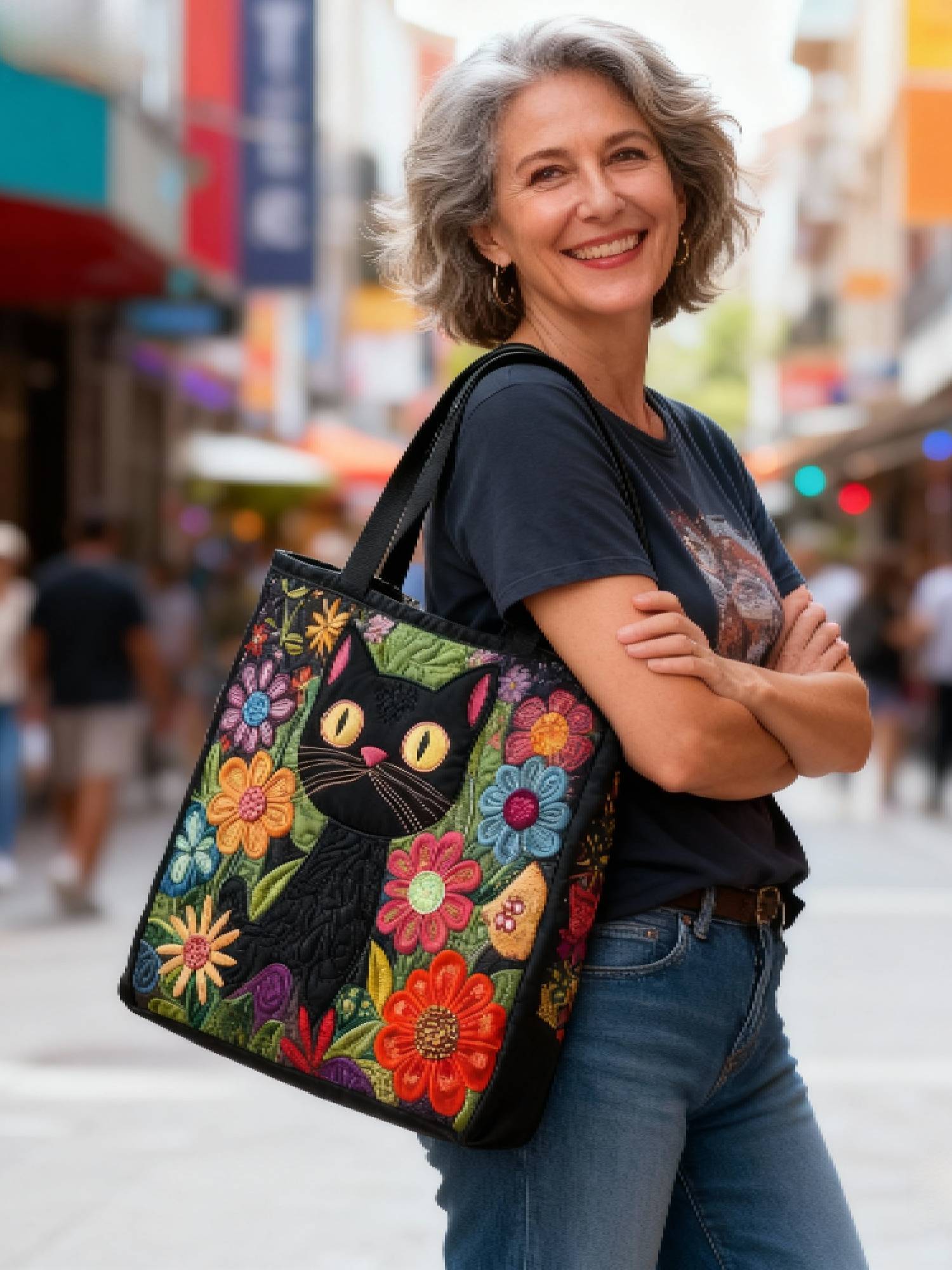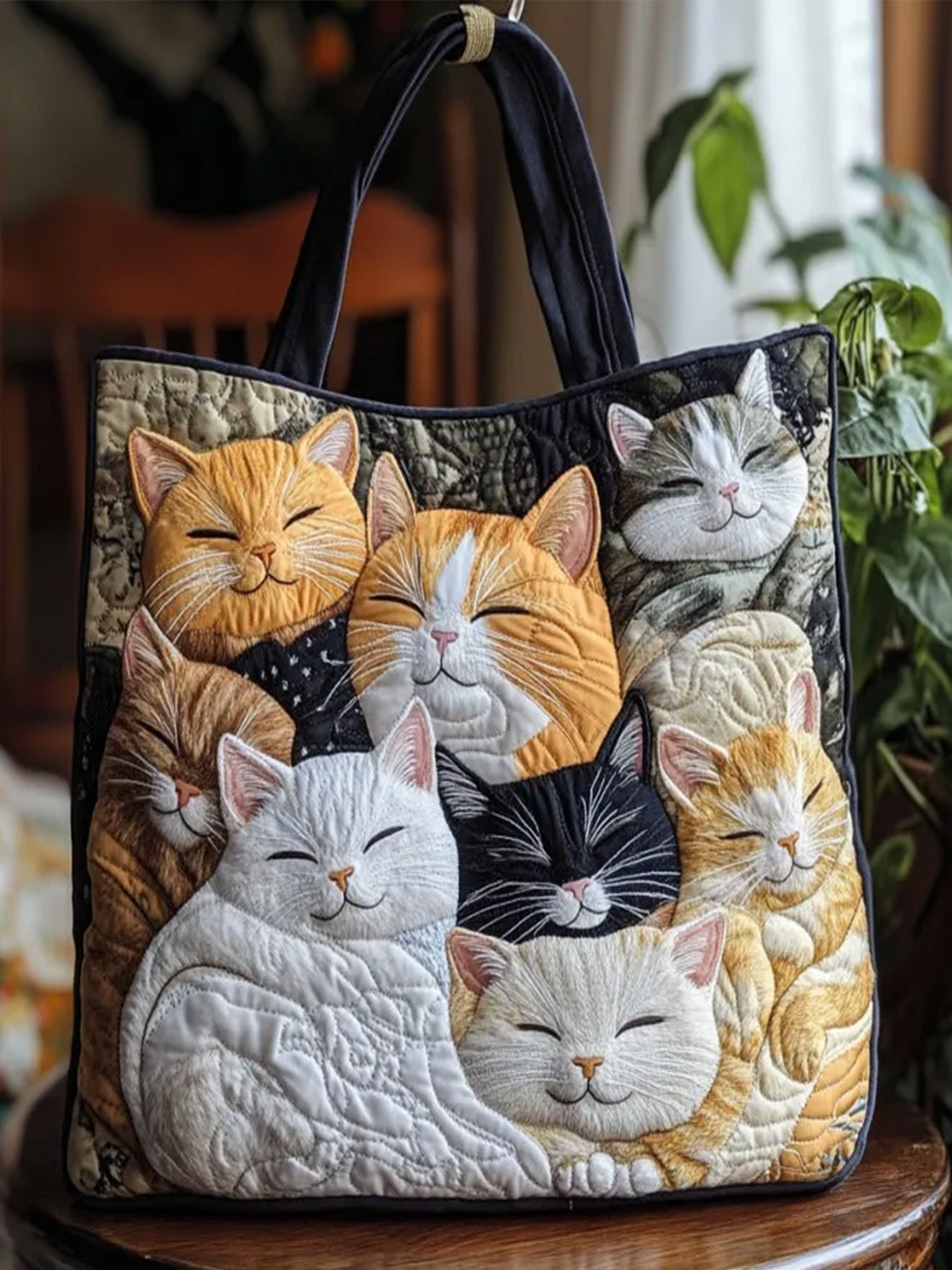 Christmas Plants Roses Animals Cat Quilted Tote Bag