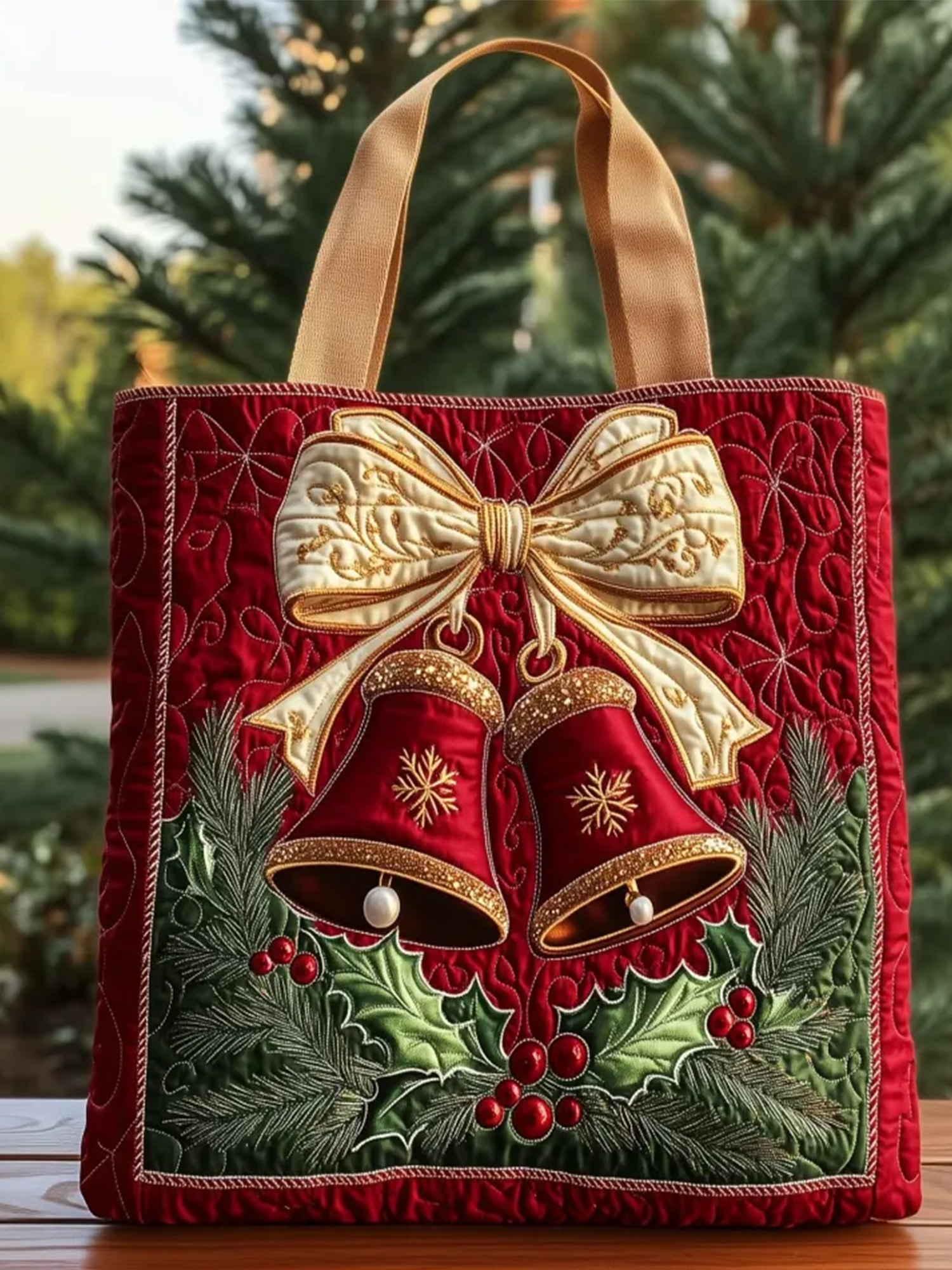 Christmas Bells Christmas tree Quilted Tote Bag