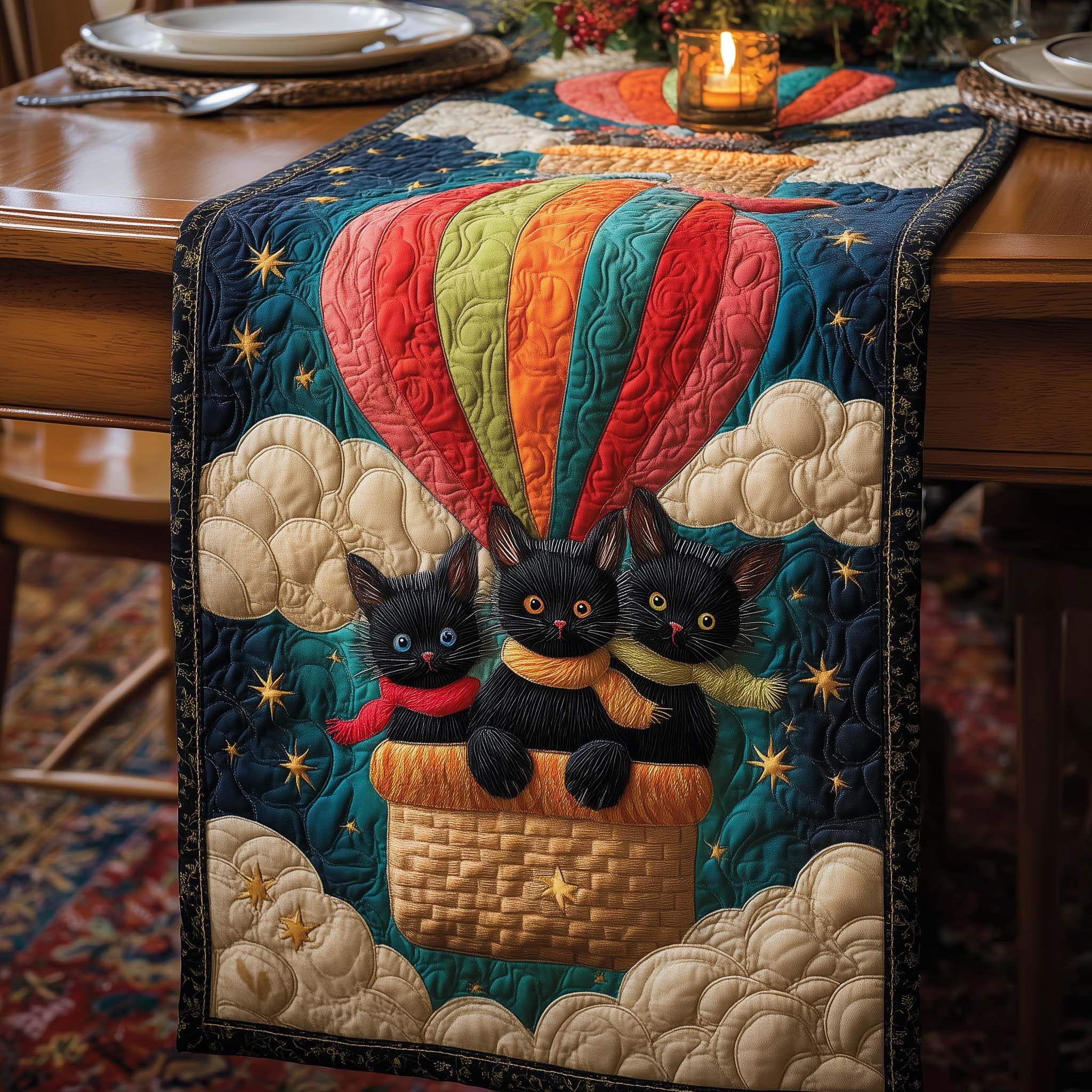 Balloon Cats Quilted Table Runner GFTOQM726