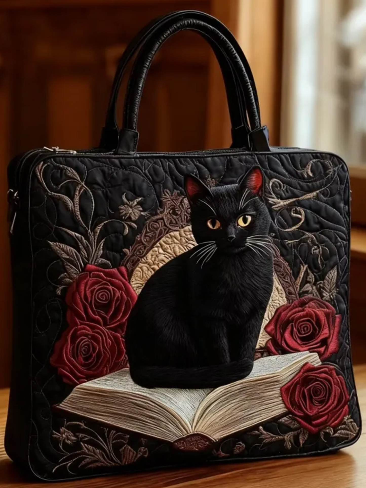 Christmas Plants Roses Animals Cat Quilted Tote Bag