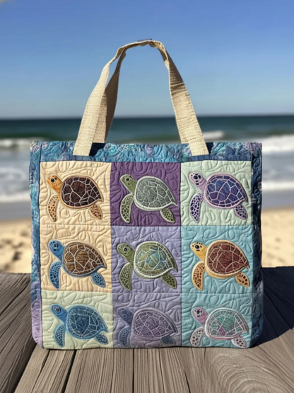 Different Turtles Quilted Tote Bag