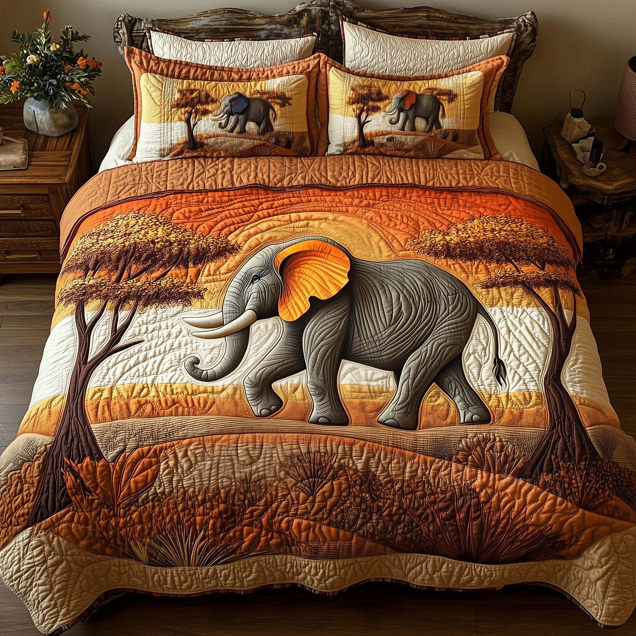 Elephant 3-Piece Quilted Bedding Set GFTOMA8002