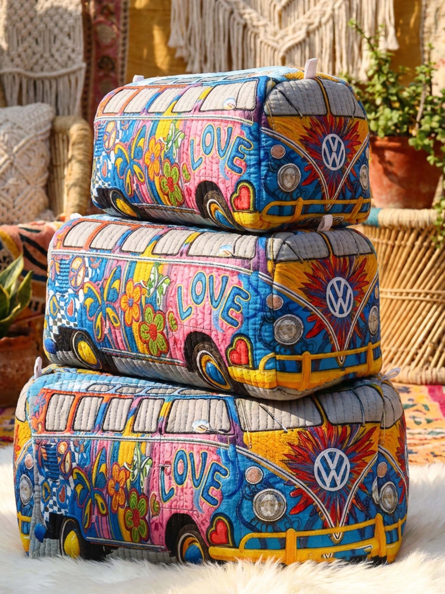 Hippie LOVE Cotton Quilted Cosmetic Bag
