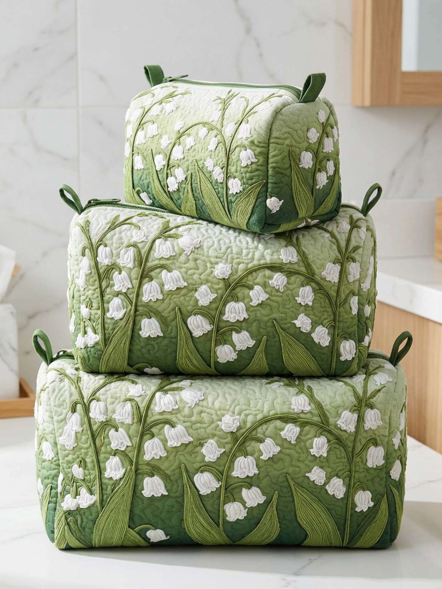 Lily of the Valley Cotton Quilted Cosmetic Bag