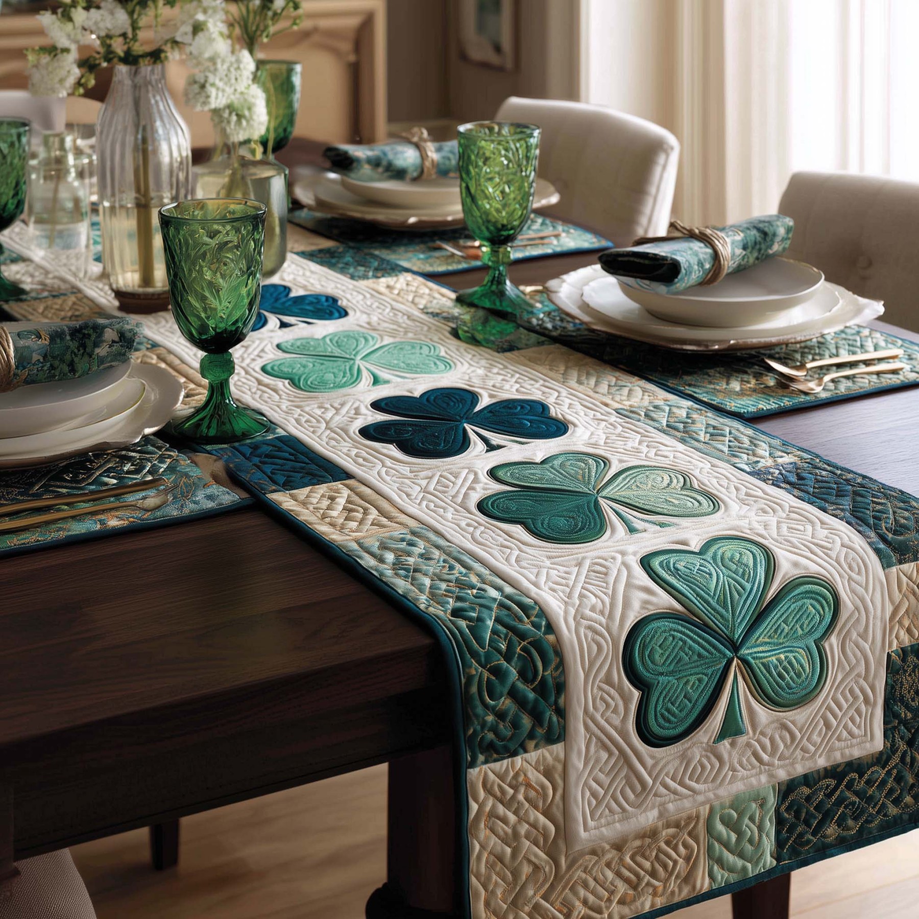 Lucky Shamrock Charm Quilted Table Runner GFTOTG2860