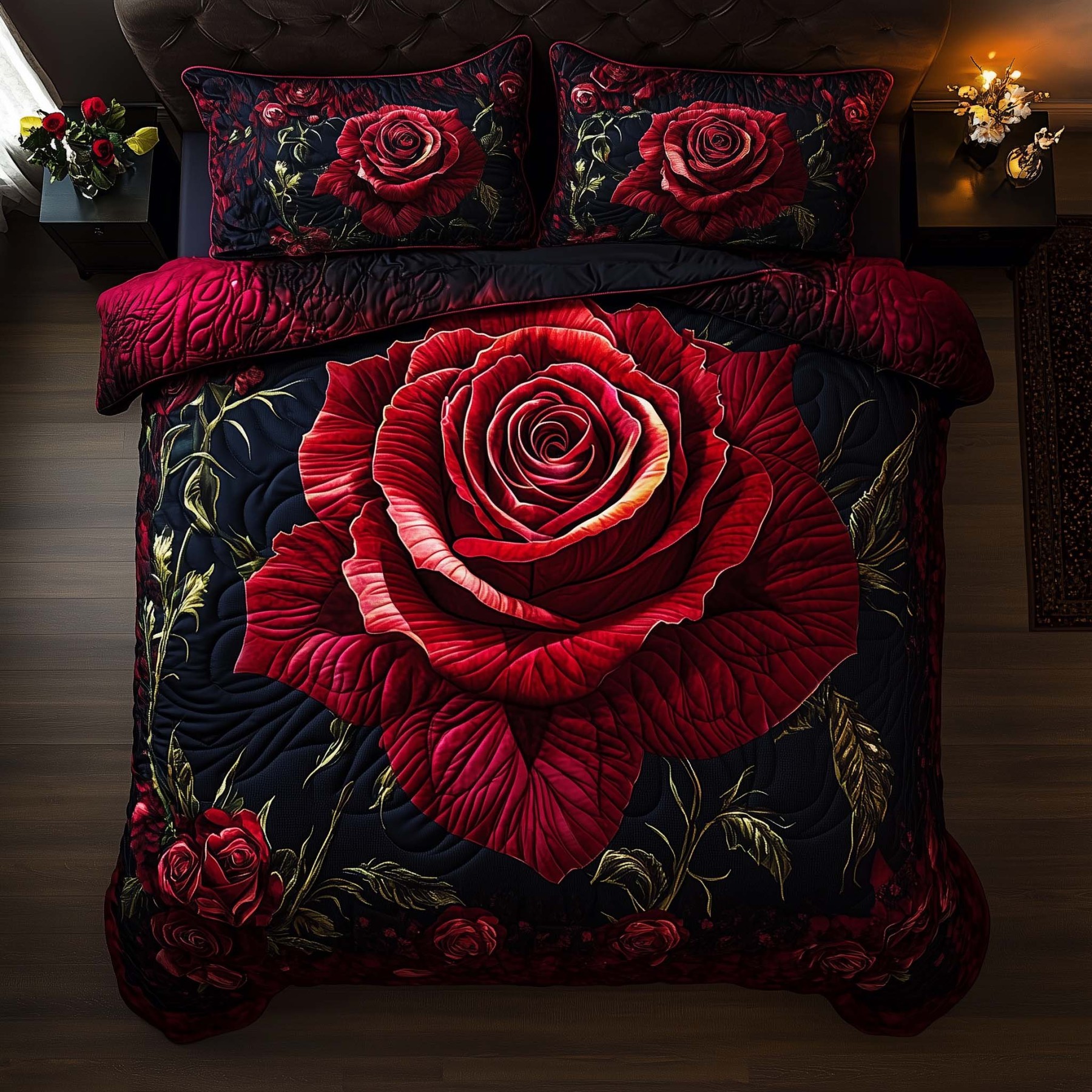 Midnight Rose 3-Piece Quilted Bedding Set GFTOQM1479