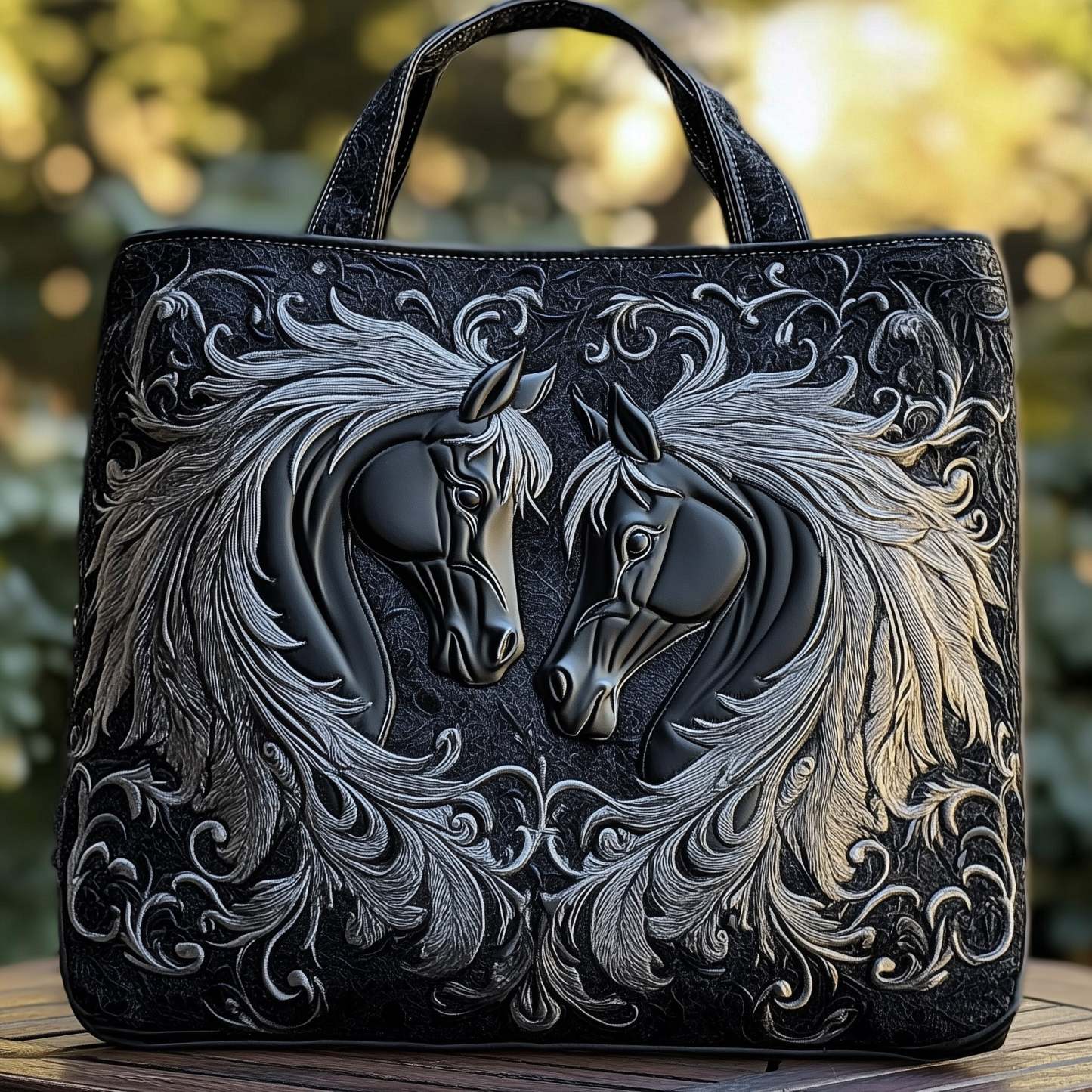 Mystic Black Horse Quilted Tote Bag GFTOMA1460