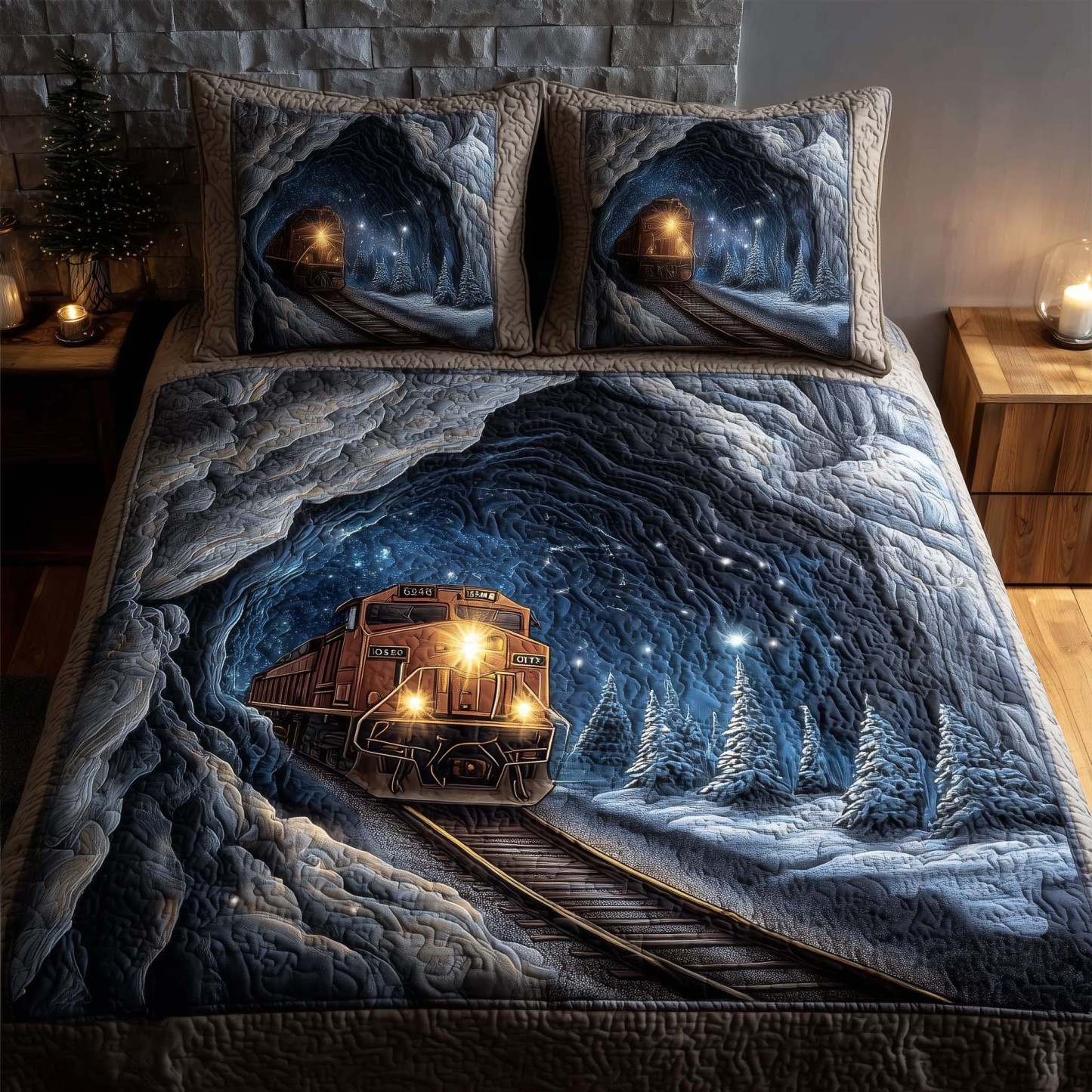 Train Journey 3-Piece Quilted Bedding Set GFTOHD12883